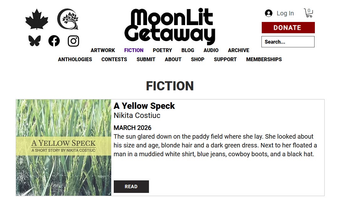 My short story “A Yellow Speck” placed in the top ten of MoonLit Getaway’s 2025 Short Fiction contest.